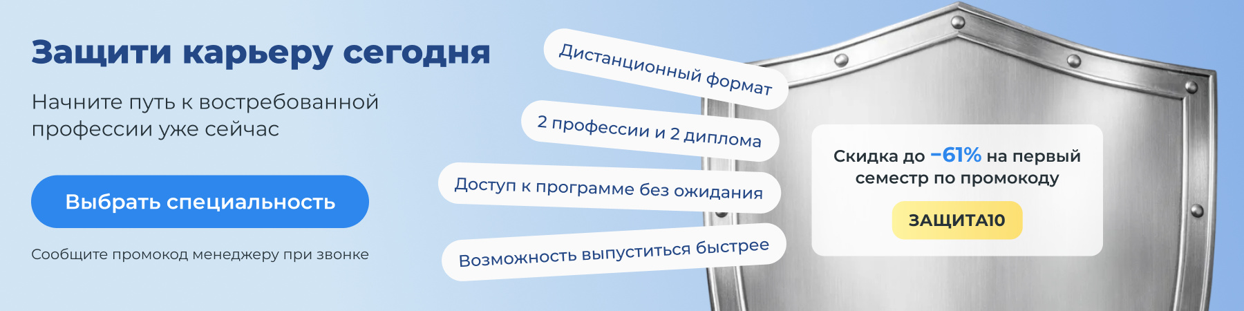 С каждой специальностью вы можете пройти бесплатную программу профпереподготовки и сразу получить два диплома